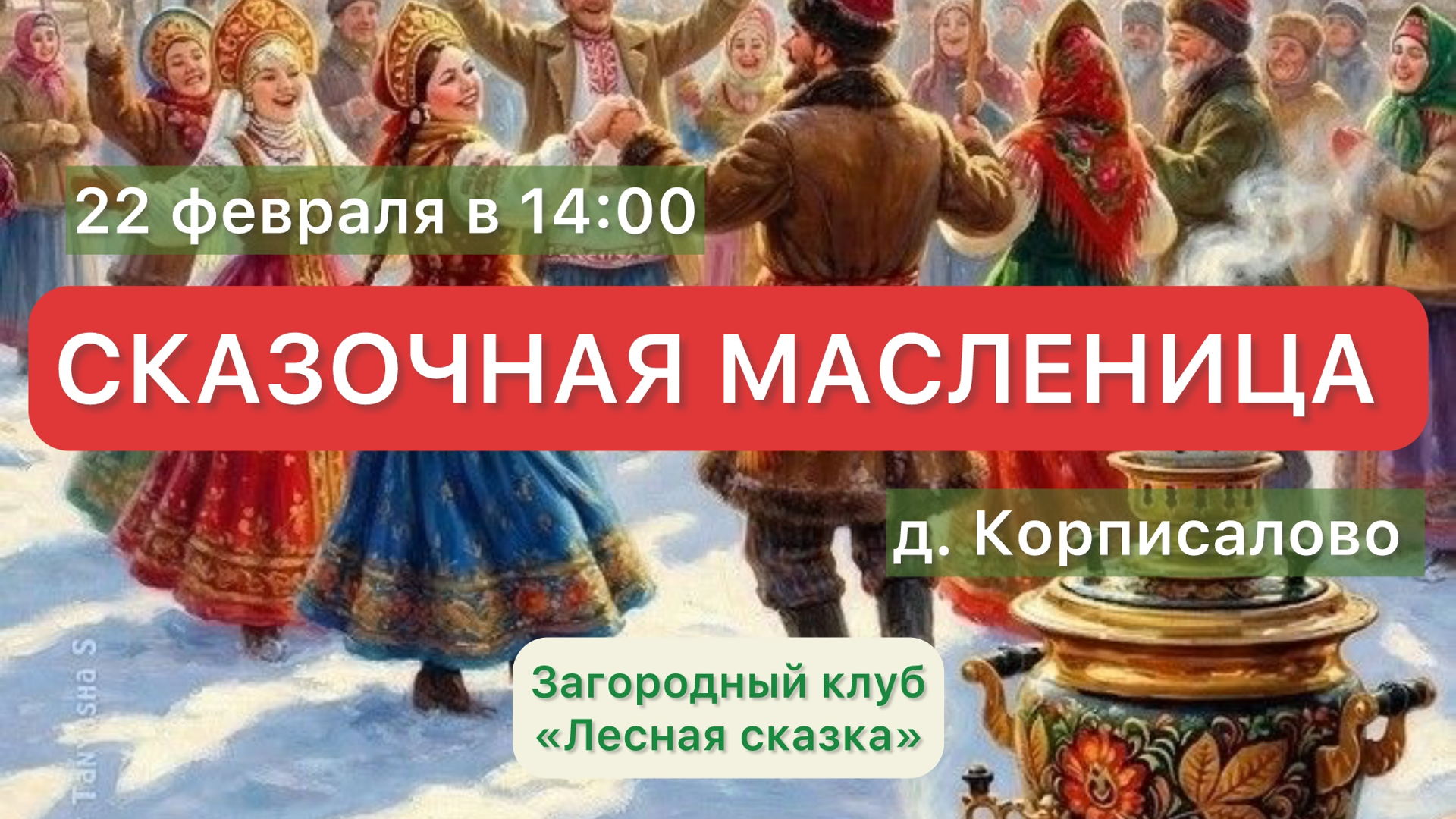 Чудесный повод собраться вместе, повеселиться и угоститься блинами. Мы устроим гуляния НА ШИРОКУЮ НОГУ в самом сердце Волшебного леса